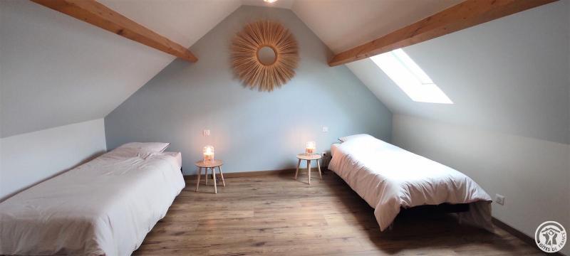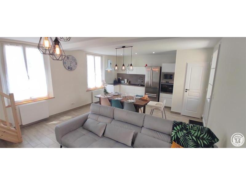 Gite indépendant de 80m² aménagé sur 2 niveaux pour 6 personnes ( 3 chambres / 5 couchages indépendants). Rez-de-chaussée : Grande pièce de vie ouverte composée d'une cuisine équipée donnant sur la terrasse (Réfrigérateur / congélateur - lave-vaisselle, micro-onde, four, cafetières dosette et filtre ), séjour/ salon avec TV (80 cm) . 1 chambre pour 2 personnes (2 lits 90x200 cm modulables en 1 lit 180x200 cm), Salle d'eau avec grande douche (1.10 x 0.80), meuble vasque, sèche cheveux, combiné lave linge/ sèche linge et WC. Etage : 1 chambre pour 2 personnes (2 lits 90x200 cm modulables en 1 lit 180x200 cm), 1 chambre pour 2 personnes ( 1 lit 160x200 cm), lit bébé . Wc indépendant à l'étage Matériel bébé à disposition : table à langer, lit et chaise haute, baignoire, réducteur, jeux pour enfants. Terrasse de 33 m² avec salon de jardin et salon de détente . Parasol. Stationnement dans la rue devant le gite. Tout est compris, seul le ménage de fin de séjour est en option.