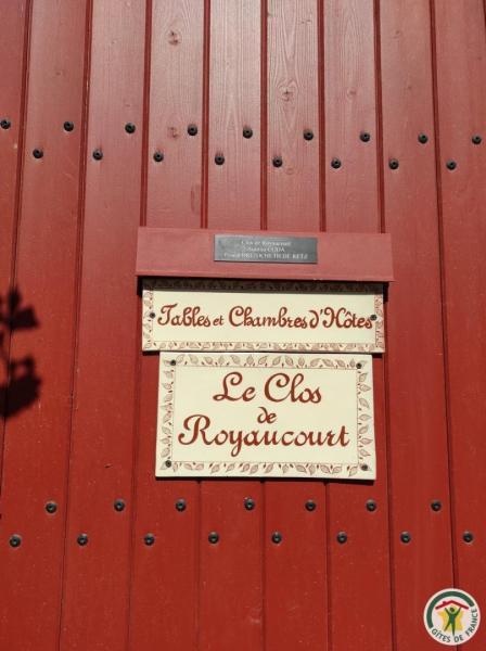 le Clos de Royaucourt vous accueille dans une ambiance détendue et conviviale pour la nuit (petit déjeuner compris). Vous pourrez profiter des repas raffinés et savoureux proposés par vos propriétaires. Les 5 chambres d'hôtes sont indépendantes à la maison des propriétaires dont une "l'Abreuvoir" en rez-de-chaussée, chacune est équipée d'une salle d'eau et de Wc privatif, télévision, wi-fi, bouilloire et dosettes de café et thé à discrétion. Joli jardin fleuri dans lequel vous pourrez vous relaxer et profiter du champs des oiseaux à moins que vous ne préfériez profiter du Spa à disposition. Le Clos de Royaucourt se met à votre service pour accueillir, dans une atmosphère chaleureuse, tous vos projets de séminaires et réceptions. Parking à quelques mètres de la propriété ou dans la rue.